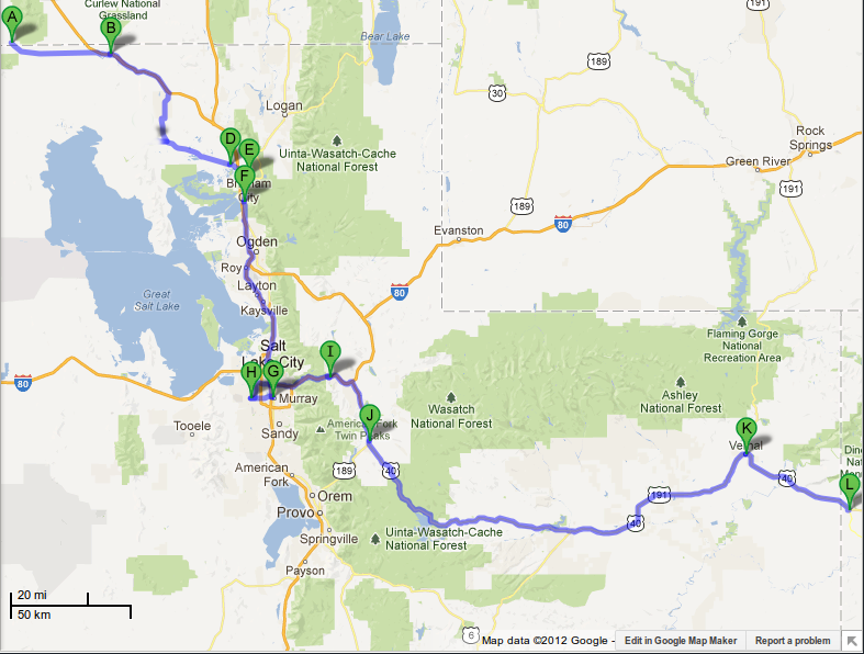 Map Of Route Through Utah