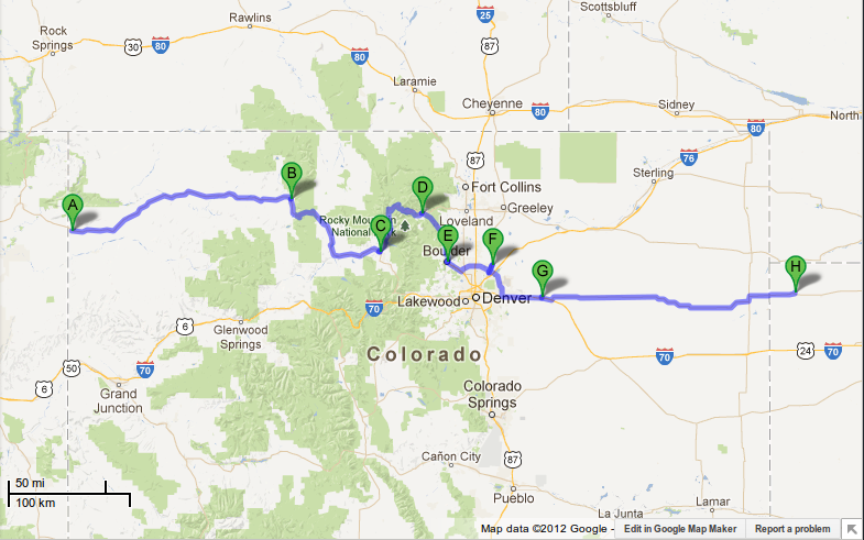 Map Of Route Through Colorado